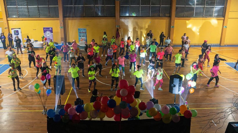 Durante más de una hora y media, los asistentes bailaron al compás de la música, en una clase especial liderada por la instructora Claudia Valderrama y el instructor invitado Jorge Rubio, desde Puerto Montt. La jornada contó con una ambientación vibrante, incluyendo una cámara 360°, premios y espacios para hidratación, además de la participación del Cesfam Los Volcanes, que ofreció vacunación contra la influenza, exámenes preventivos y consejería en salud para promover estilos de vida saludables.